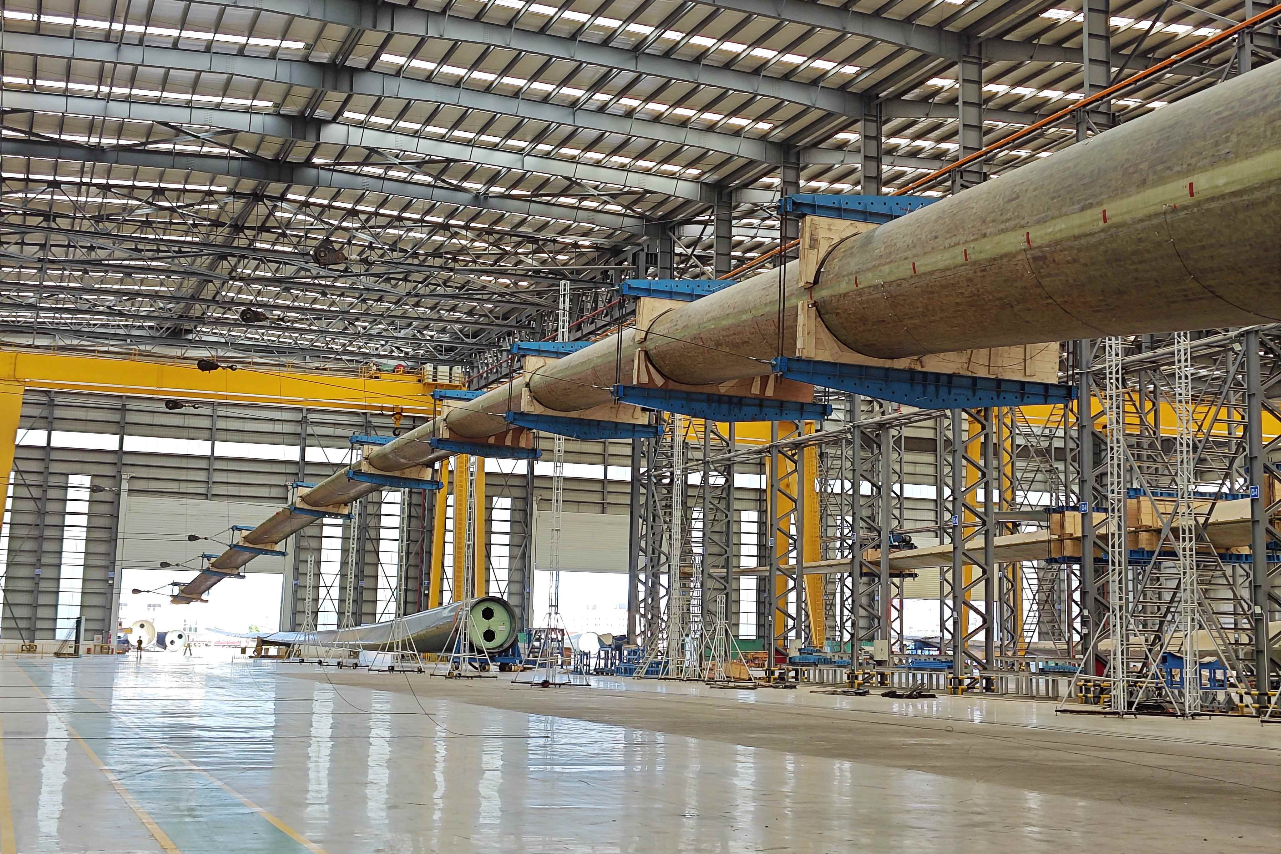 5月28日,东方电气风电股份有限公司自主研制、拥有完全自主知识产权的B1260A型叶片,在江苏叶片制造基地顺利下线,该叶片长126米,是目前全球已下线的最长风电叶片。同日,东方风电自主研制的B1200A型叶片一次性顺利通过静力试验,各项测试指标与设计值良好吻合,120米级叶片的材料、结构、工艺及质量控制得到了充分有效验证。