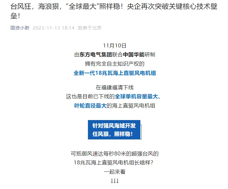 [国资小新]台风狂,海浪狠,“全球最大”照样稳!央企再次突破关键核心技术壁垒!