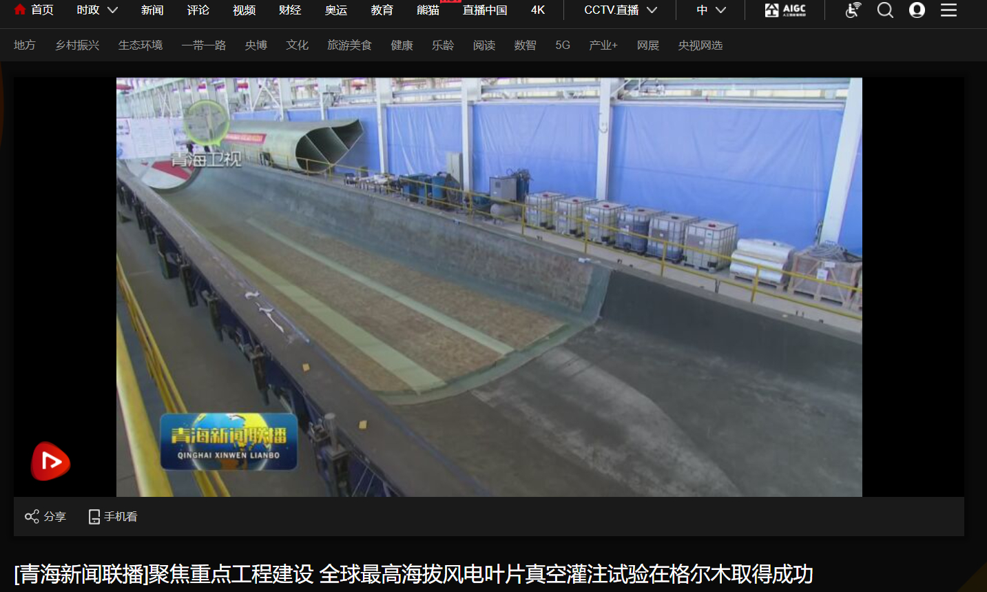 [青海新闻联播]聚焦重点工程建设 全球最高海拔风电叶片真空灌注试验在格尔木取得成功