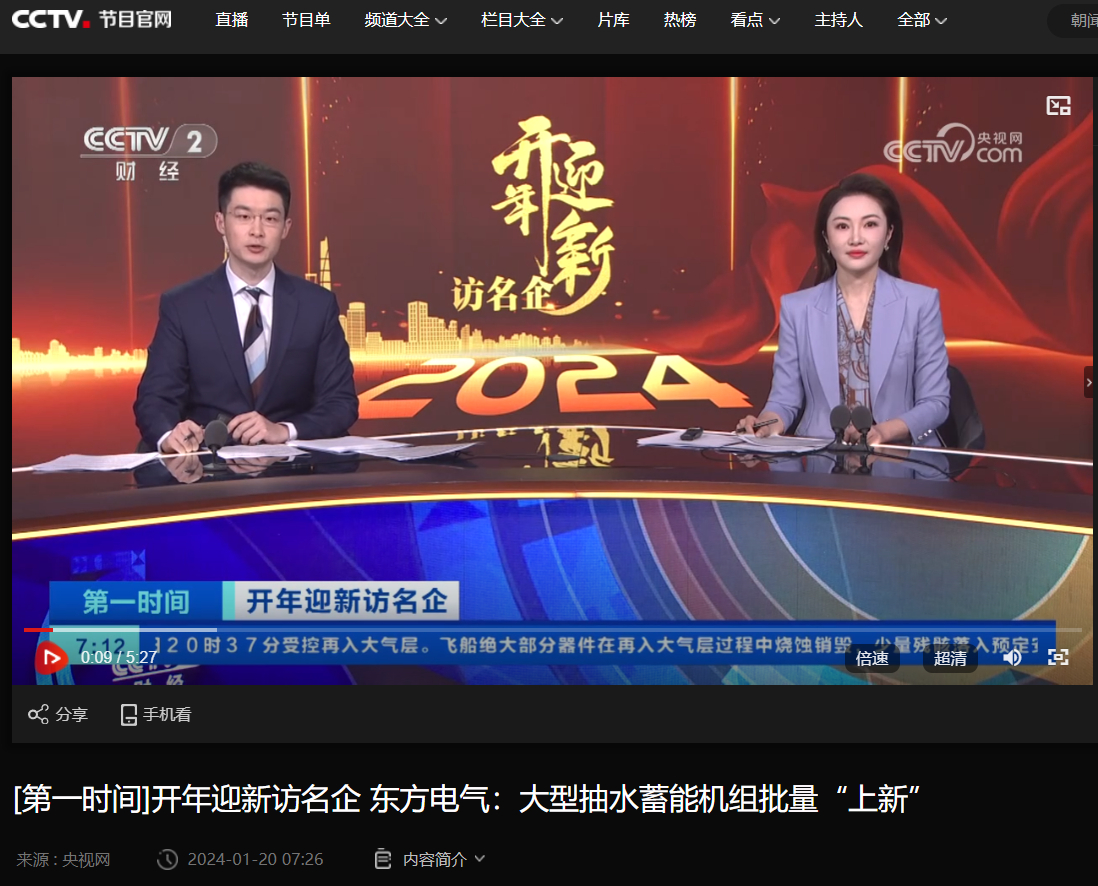 [央视第一时间]开年迎新访名企 东方电气:大型抽水蓄能机组批量“上新”