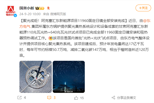 [国资小新]聚光成炬!阿克塞汇东新能源项目11960面定日镜全部安装完成