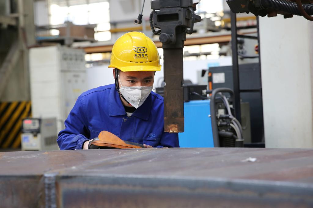 秦建所在班组从事东方电机大型水火电机组核心部件的焊接工作,干好自己工作的同时,他还要随时解决“疑难杂症”。