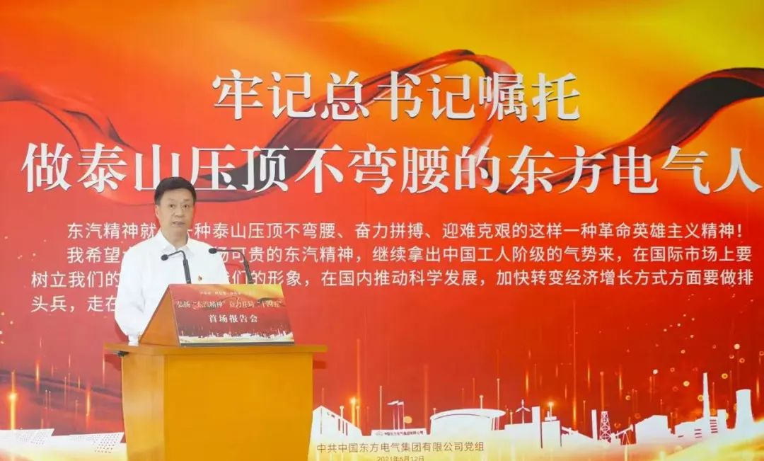 2011年习近平同志在视察东方电气时强调要继续弘扬可贵的“东汽精神”。东方电气集团把贯彻落实总书记重要讲话精神、传承弘扬“东汽精神”与企业文化的赓续发展结合起来紧密结合起来,将总书记的殷切期望和“东汽精神”红色基因根植全集团广大党员干部职工心田,为把握新发展阶段、贯彻新发展理念、融入新发展格局,推进高质量发展凝聚起强大精神力量。