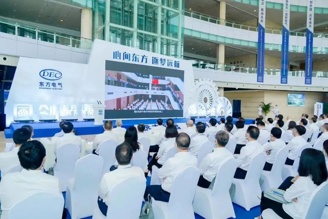 “长河大江,冲波击浪,向阳而生,迎风飞扬。熊熊火焰,迸发光芒,大国重器,铸就荣光……”东方电气之歌昂扬激越的歌声,如同奔涌的波涛,以“鲲鹏水击三千里, 组练长驱十万夫”之势,唱响东方电气人在“同·创”文化引领下的同心、同力、同行。